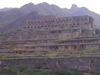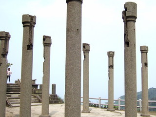 黃金神社的柱子群。之前應該也有屋頂吧? 不難想像之前的輝煌,能夠蓋在這樣半山上,應該花費了不少人工才是。 |